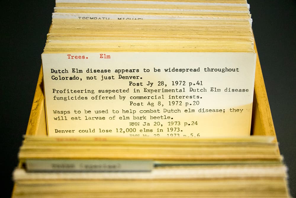 The disease, a fungal infection spread by beetles, was a scourge that led Denver media to report on the issue over and over again. Denver Public Library's Western History Collection has no less than 56 entries in its card catalog dedicated to disease coverage.