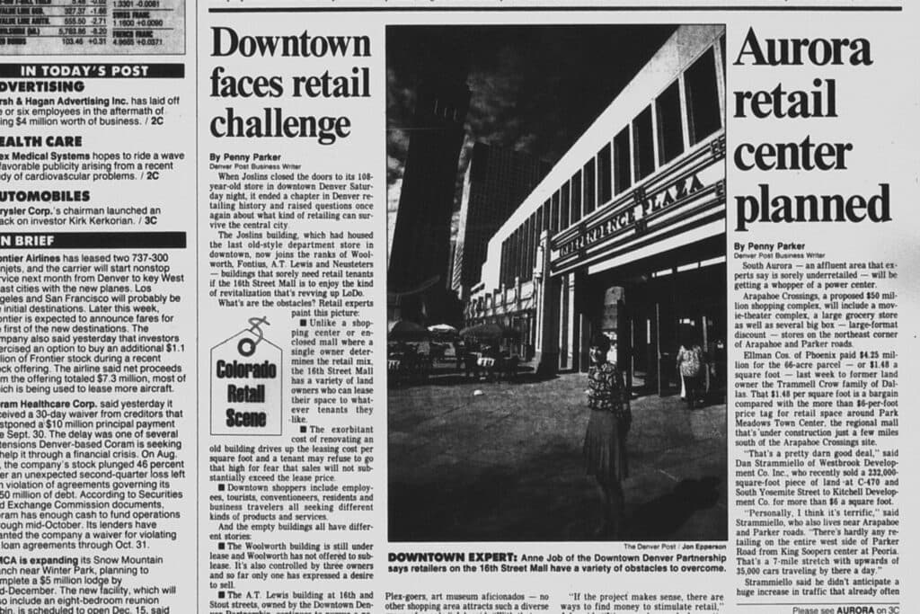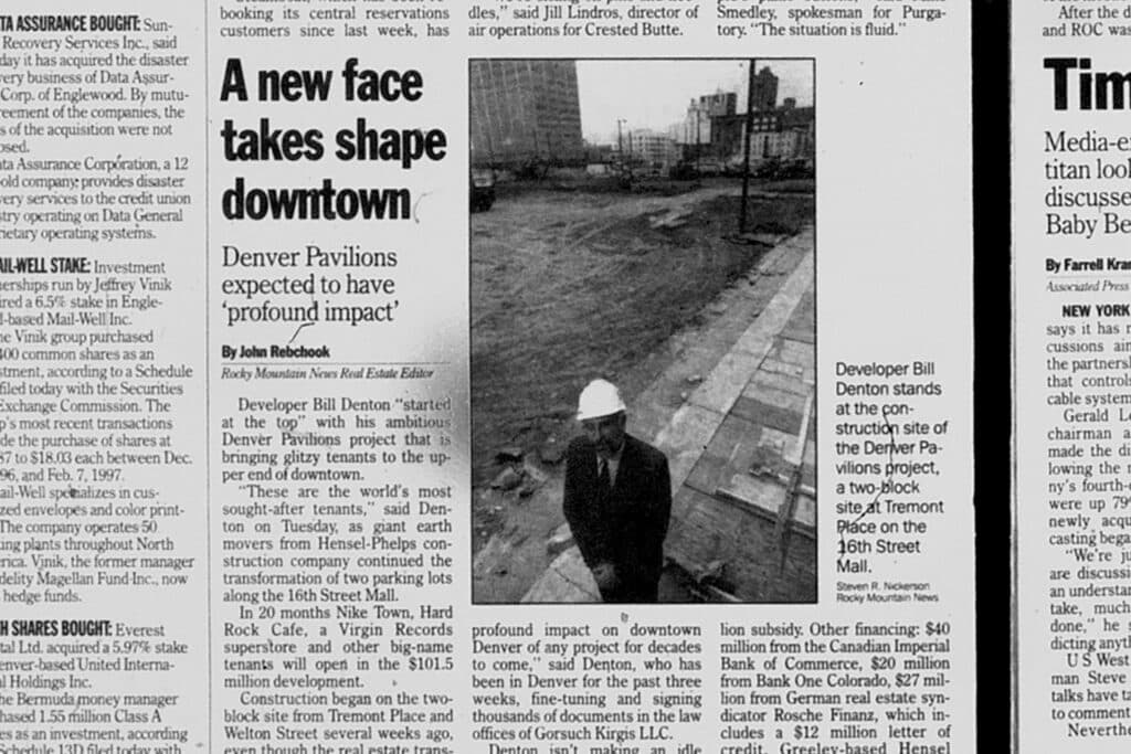 “A California developer plans a $90 million entertainment and retail project that promises to revitalize the long-suffering upper end of the 16th Street Mall,” the Rocky Mountain News read on Oct. 13, 1994.