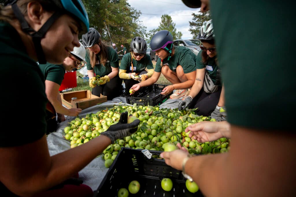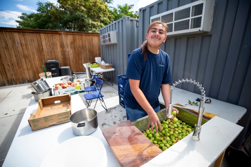By noon, apples from the harvest had already been delivered to Sun Valley Kitchen, a nonprofit that’s worked to supply the neighborhood with healthy meals since 2013. More volunteers with Grow Local Colorado and its partners were already working to clean, chop, press and cook the bounty for people visiting the fall festival.
