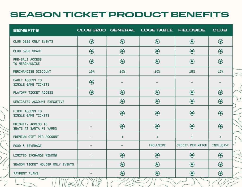 Inaugural season ticket holders will also get first dibs on future season tickets, including when the team moves to its planned stadium at Santa Fe Yards.
