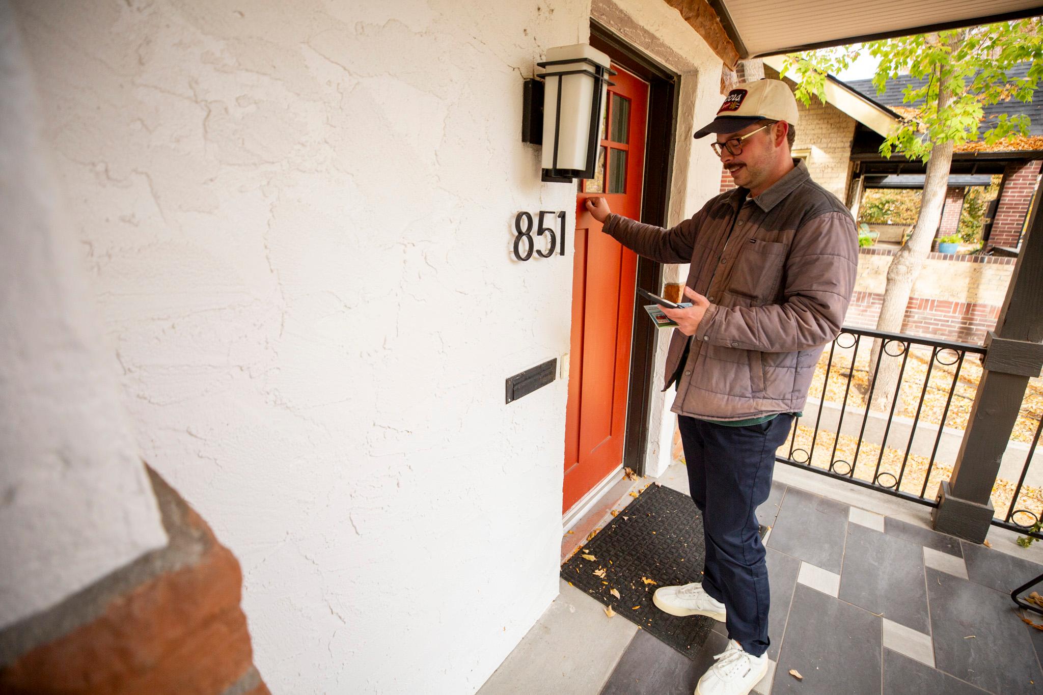Levi Griffith, a member of the Denver Young Democrats, was one of the volunteers knocking doors on Saturday. His strategy was to be patient and try to build a genuine connection with prospective voters.