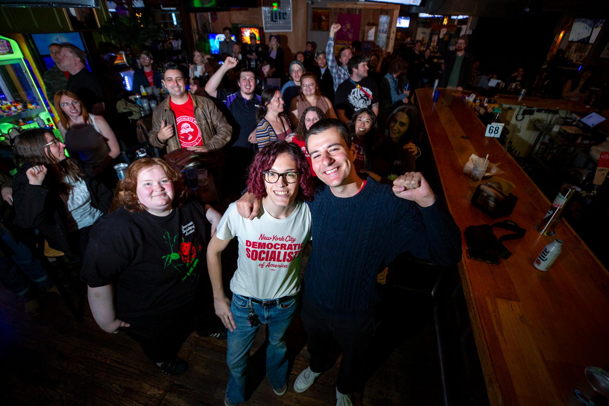 While there were several statewide and local ballot initiatives they cared about, the democratic socialists had their eyes trained on Stoney’s televisions, where they were eagerly awaiting news out of New York City — a city thousands of miles away.