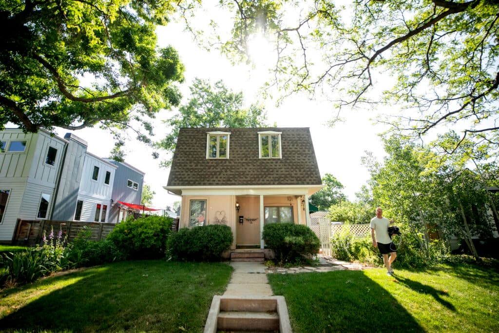 Todd Hartley exits the backyard of his childhood home in Wheat Ridge, which was occupied by his brother, Tim, before he moved into a nearby hospice facility. June 21, 2025. Kevin J. Beaty/Denverite