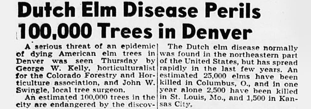 The disease, a fungal infection spread by beetles, was a scourge that led Denver media to report on the issue over and over again. Denver Public Library's Western History Collection has no less than 56 entries in its card catalog dedicated to disease coverage.
